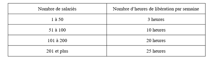 Le comité de santé et sécurité s’assure de la répartition des heures de libération entre les différents quarts de travail en fonction du tableau suivant: